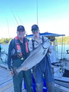 Chinook have been biting first thing in the morning and on the tide changes. The very day we opened a beautiful 42 pound Tyee was weighed in. This has been followed by several more in the 30’s and today we had a nice 44 pound Tyee. Generally, Chinook have been running 15-22 pound size range and it seems fish over 30lbs are on the dock several times each trip. Coho have been showing in good numbers. These are ranging from 8-12 pounds.