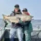 Our fleet is a little wet today with small gusts of SE winds bringing precipitation. Still, the fish are biting and our guests are having a great time. Several nice big fish over 30lbs have come in over the past few days with the largest being 38lbs. We’ve included a shot of Terry and Jaimie who have been fishing with us for years as a family group. Terry’s largest and first Tyee weighed in at 33lbs!